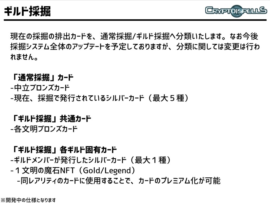 公会实力的强大与否以①公会CryptoSpell和②公会挖矿的“魔石”来决定。