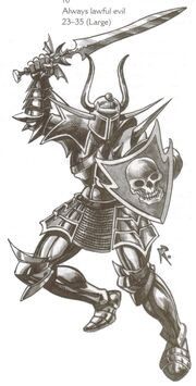 传说,这个怪物是一个腐败残酷、充满仇恨的战魂化身。他在永恒火刑中被锻造,浴火重生为昔日荣耀的残忍暗影。身穿恶魔盔甲、手挥神秘武器的他,漫步在通往地狱的路上,寻找那些入侵他的地盘的敌人。他是一个残酷无情的战争机器,拥有无与伦比的力量,任何向他借道的人都会被砍得死无全尸。