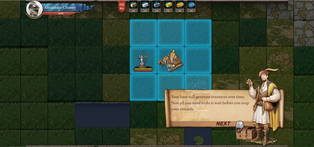 在搭建了第一个村镇后,我们会收获第一批资源。随着时间的流逝,城镇会为我们带来更多的资源。