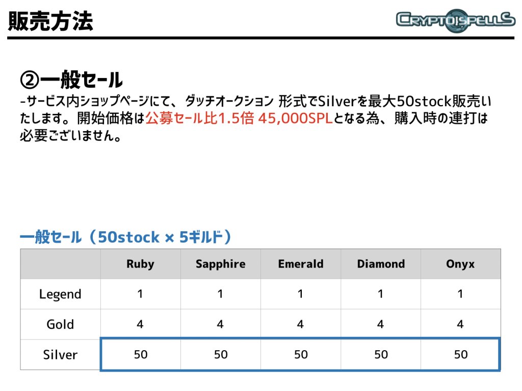 - 传说、黄金等级的50股票可以合成一套,5个攻击各自可以卖出150ETH。申请方法向公众开放,如果申请数量超过申请人数,将在筛选后进行抽签,如果低于此数量,则将以一般销售的方式出售。
