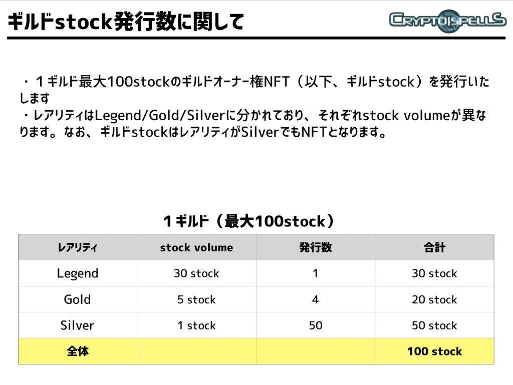 区块链卡牌游戏《CryptoSpells》随着公会功能的上线,属于公会所有权的新NFT公会股票开始发行。持有50%股票的用户,将会成为公会的新任会长!
