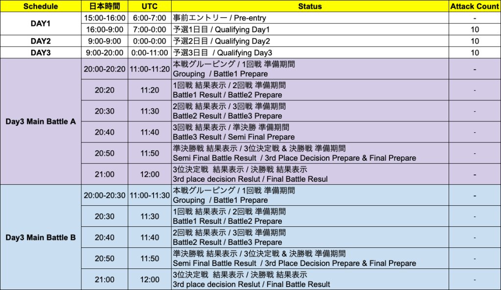 DAY1:(Fri) 15:00 ~ (Sat) 8:00 / Attack Count 10