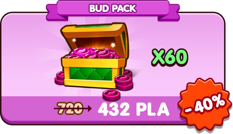 432PLA币即可入手BUD包,含60BUD币,省40%。