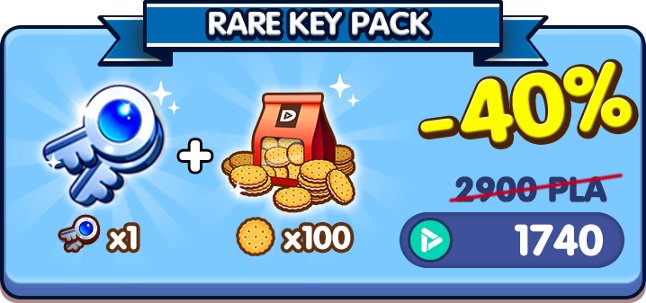 1740PLA币即可入手稀有钥匙包和100曲奇硬币,省40%。