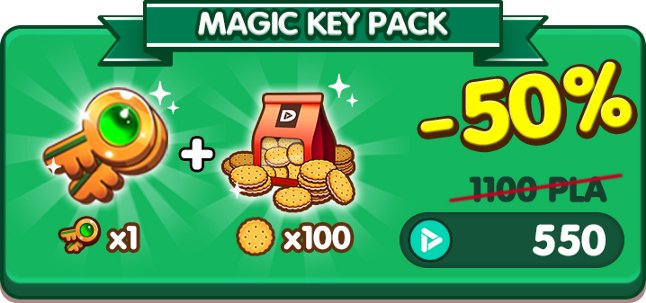 500PLA即可入手魔术钥匙和100曲奇硬币,省50%。