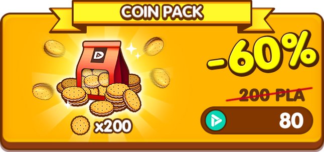 购买硬币包以快速加满曲奇硬币,每袋200个,省60%。
