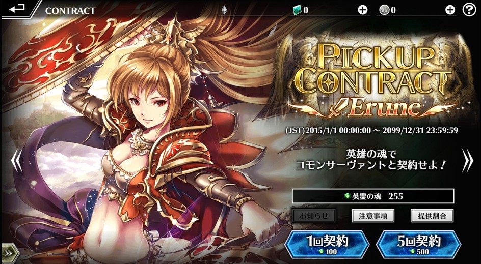 完成教程关卡就会解锁CONTRACT・BATTLE・DECK。在CONTRACT中消耗英雄之魂,就可以入手新的从者!