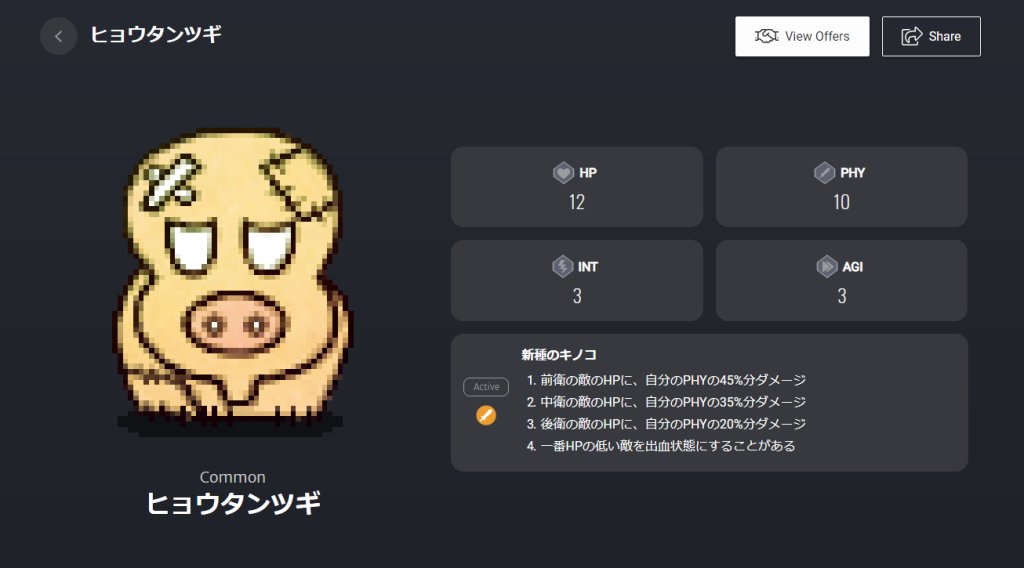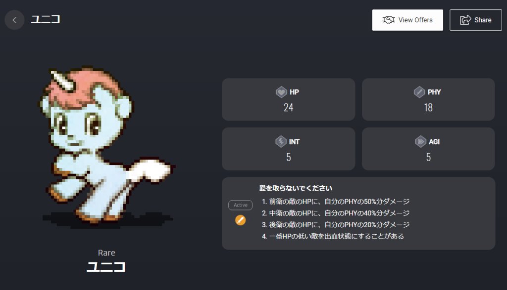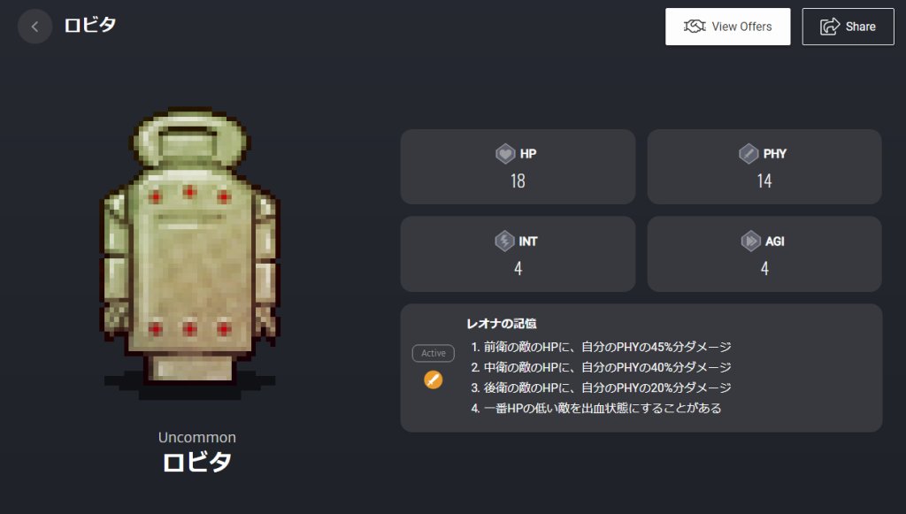 根据PHY值添加的异常状态,作为主动技能发动时会造成对方最大HP的10%的伤害。5回主动技能后100%效果解除。