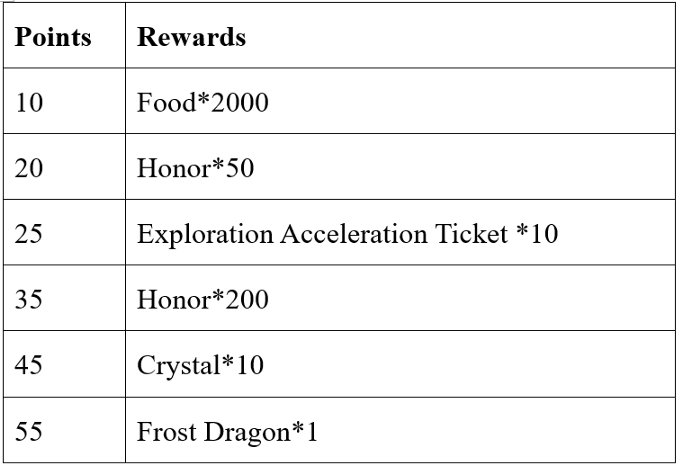 *所有奖励根据所获积分进行发放。这意味着累积55点及以上积分的驯龙师可收割所有奖励,每种奖励只能领取1次。
