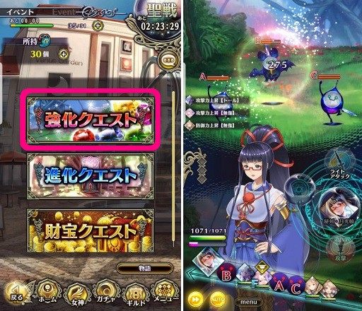 从圣战战队选择五位女神参与战斗。会消耗所选女神的BP总值。另外,如果对手发动攻击,女神的生命值会根据受到的伤害而降低。攻击时可以选择自动战斗。