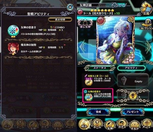 一些指挥能力特定的女神装备后可以发挥更加强力的效果。