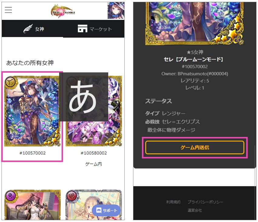 1.从官网选择你想发送的女神。点击女神详细下的发送至游戏(ゲーム内送信)按钮