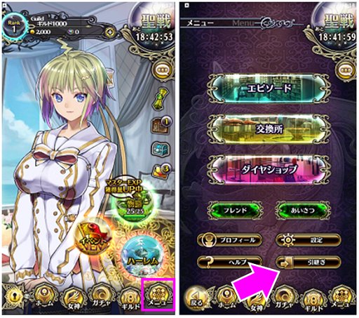 1.打开app,点击菜单(メニュー)按钮,再点击继承(引継ぎ)