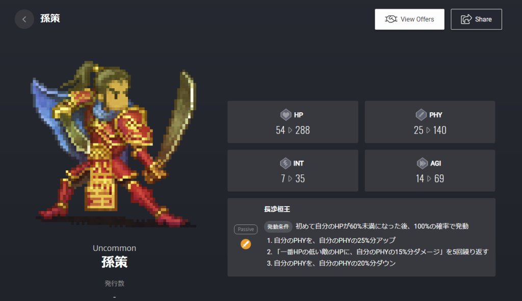 使用NFT转换器,孙策会作为“Uncommon单位 孙策”在《BRAVE FRONTIER Heroes》的世界中登场。