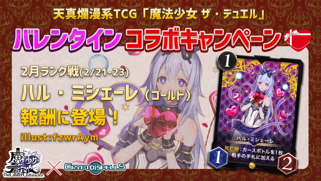 萌系美少女卡牌游戏《魔法少女THE·DUEL》与区块链游戏《CryptoSpells》联动第二弹!一起相约情人节!