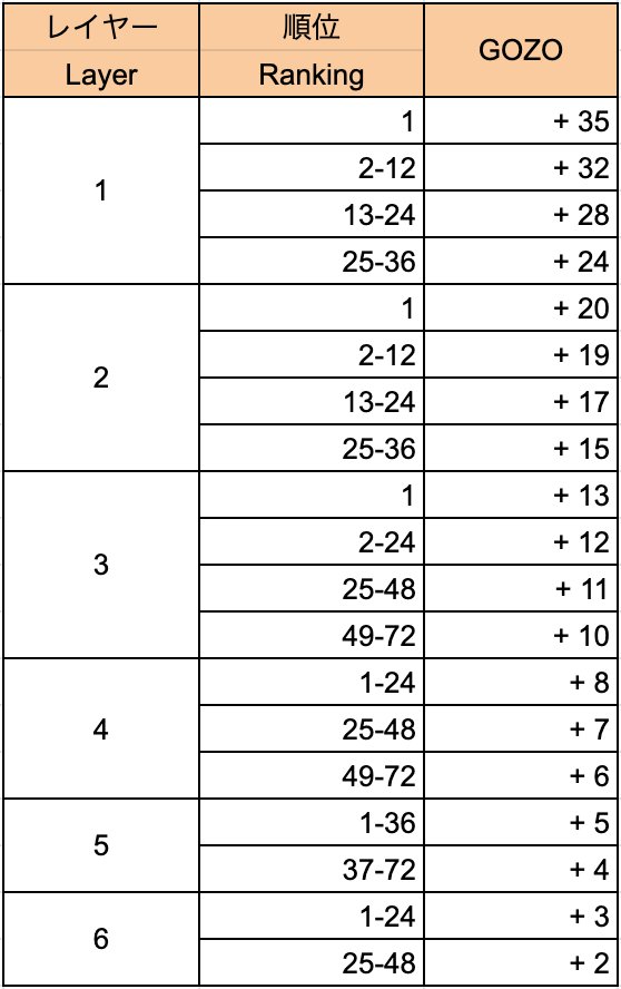 GOZO箱在主战Term结束时,根据Layer和排位获得相应数量。