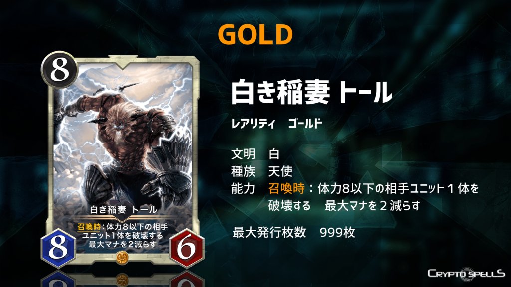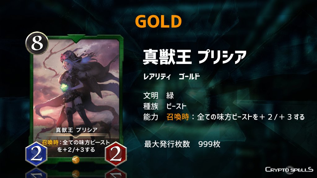 3月3日区块链游戏《CryptoSpells》卡片贩售#15开始。本次贩售的是真兽王普利西亚和白色闪电索尔。