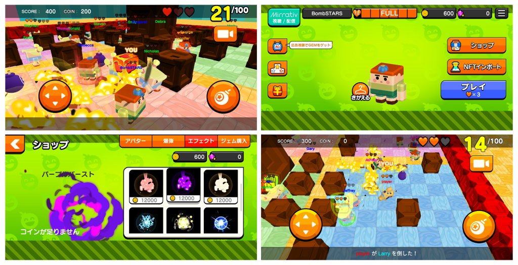 并且还搭载了NFT导入功能,跨越游戏的界线其他游戏的角色都可以在《Bomb STARS》里使用!