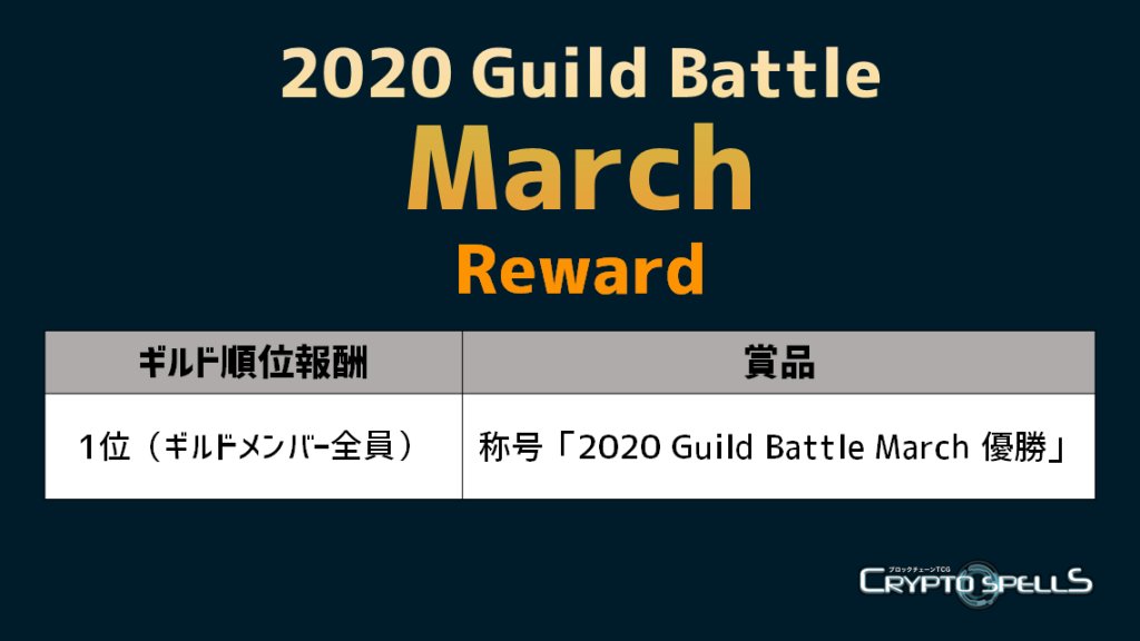3月29日,TCG区块链游戏《CryptoSpells》3月公会战开启!仅有两小时的强者对决!和公会成员们一起赢取胜利称号吧!