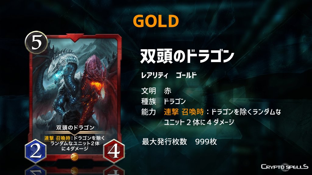 TCG区块链游戏《CryptoSpells》新卡贩售#017开始了!这次贩售的卡牌中有GOLD等级的二头龙和芬里尔