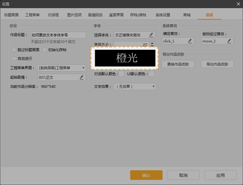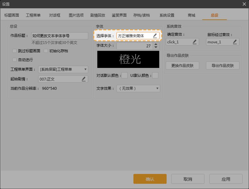 字体是文字的风格与“外衣”,当文本字体不符合作品风格,或者与UI不搭时,我们需要对文本字体进行更改,并且通过更改字号调整文字的大小。但是,如果选择了难以辨认的装饰性字体,字号设置得过小或过大,反而会给玩家的阅读造成障碍。