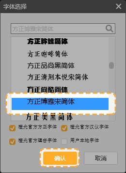 4,在跳出的“字体选择”框中选择要更换的字体,点击“确认”。