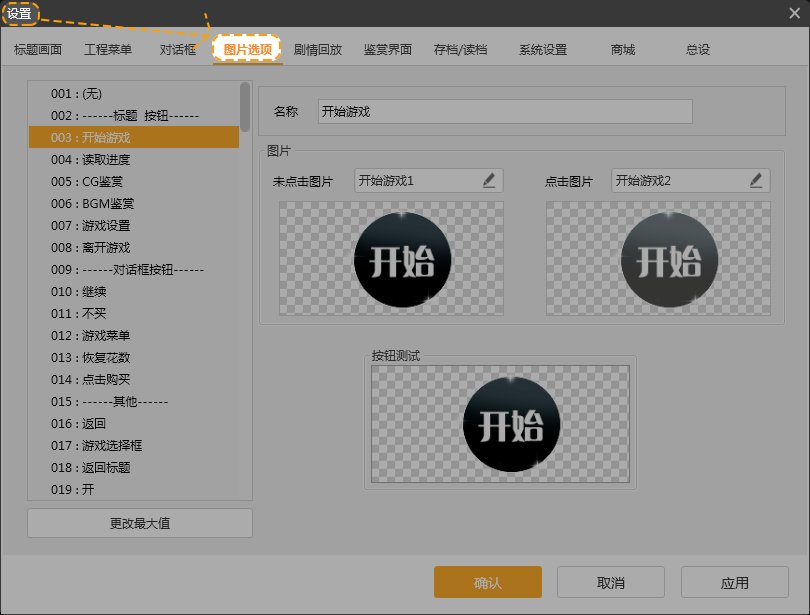 图片选项按钮是由两张图片组成的具有选择功能的按钮,一般应用于图片选项中,也可用在UI界面的选择按钮等。