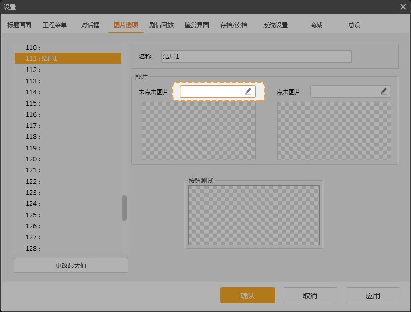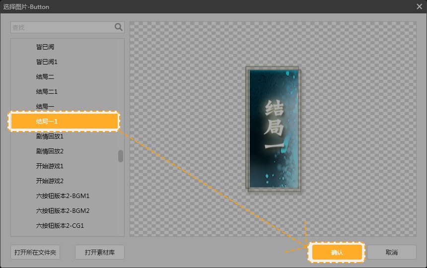 4,在“名称”处给图片按钮命名,这里命名为“结局1”。