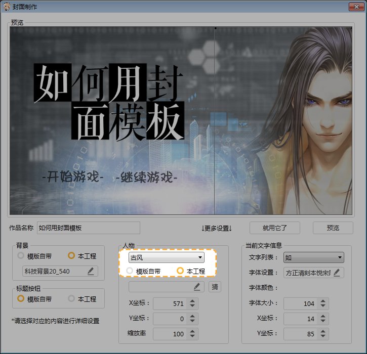 第十步,在“人物”项中将“古风”立绘设置为“本工程”。