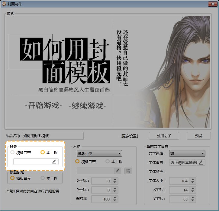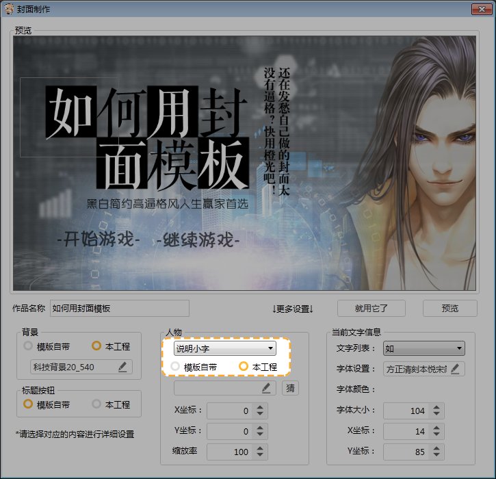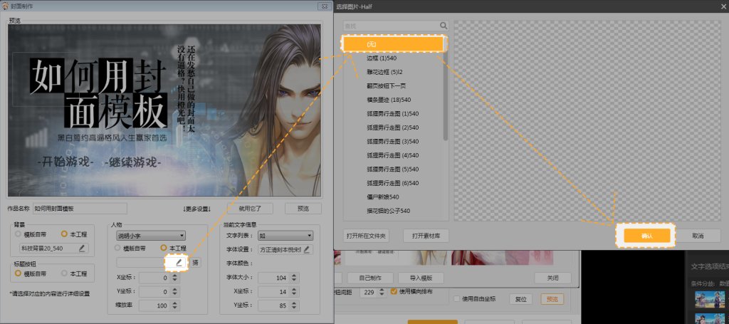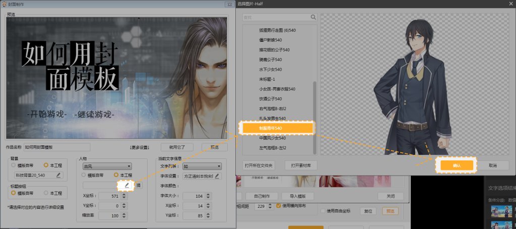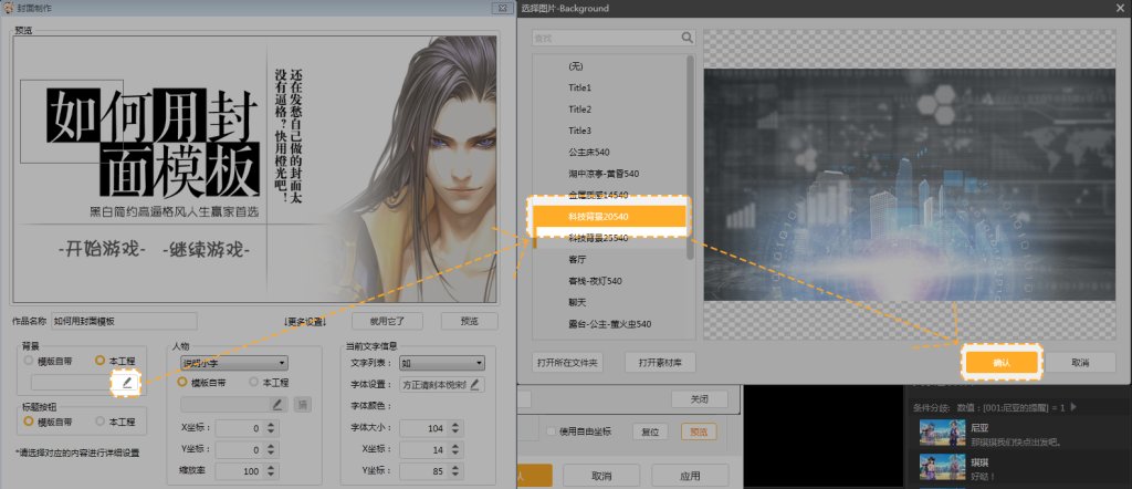 第十一步,点击“本工程”下的小铅笔,在跳出的“选择图片”框中,选择所需要用到的封面立绘素材,点击“确认”。