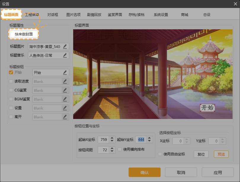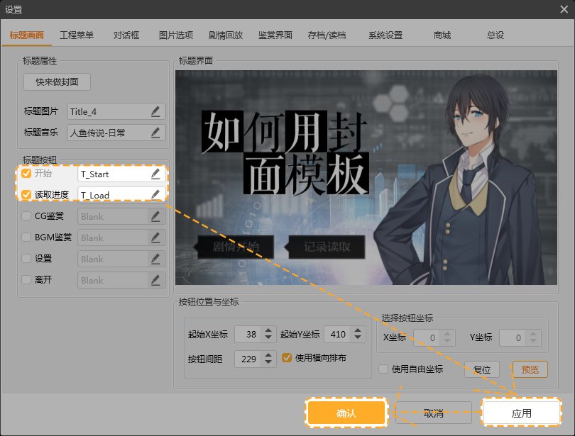 第十八步,在“标题画面”页面中设置好封面按钮,点击“应用”,点击“确认”。(按钮具体设置请查看相关教程。)