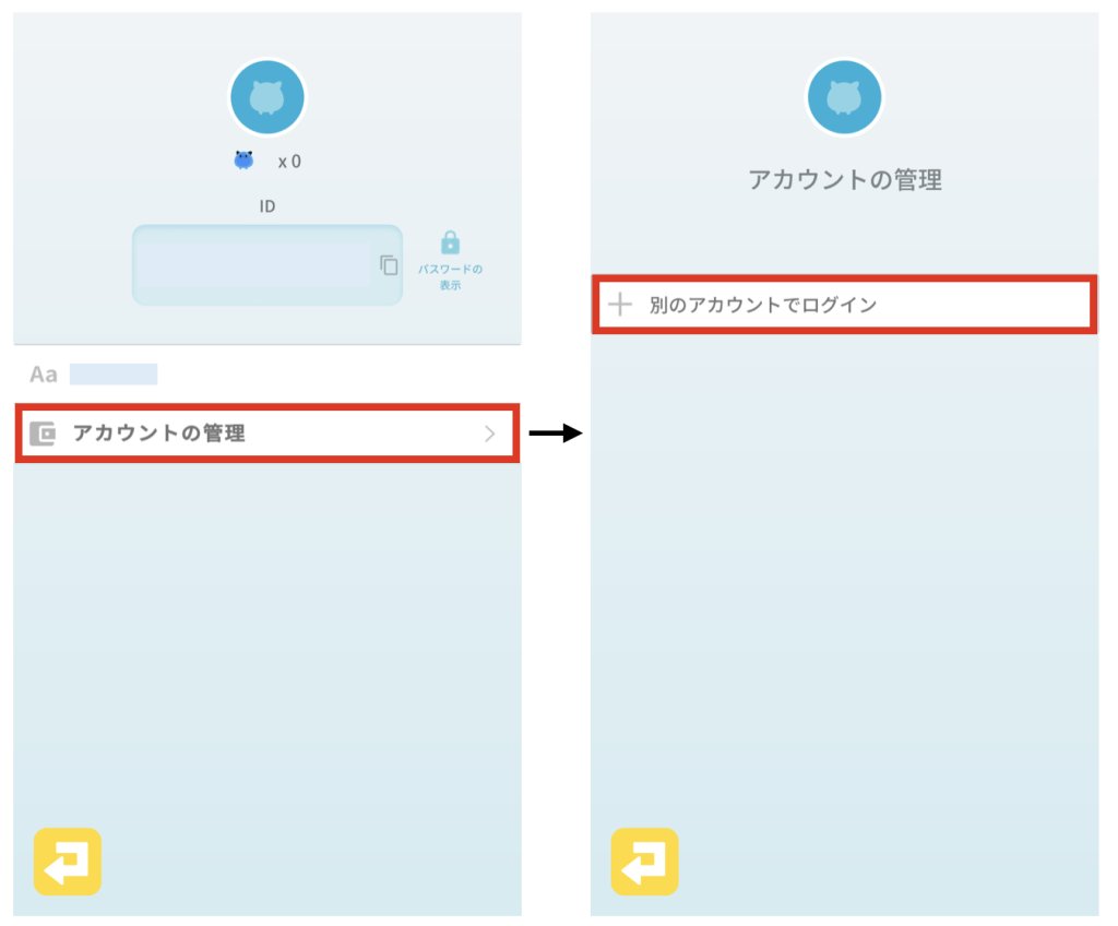 点击“账户管理(アカウントの管理)”,选择“登录其他账号(別のアカウントでログイン)”。