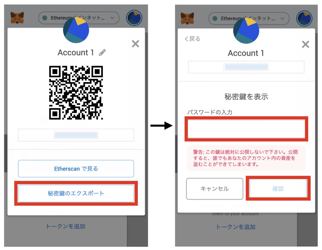 选择“导出密钥(秘密鍵のエクスポート)”,输入密码并点击确认。复制所导出的密钥。※请注意保管你的密钥。