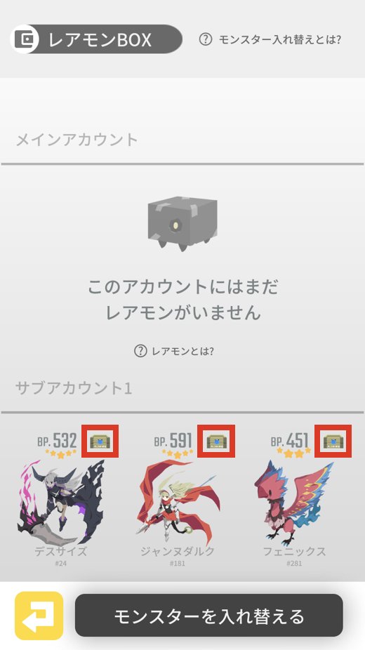- 已配置在MonsterBOX队伍中的RAREMON,若需要移动到已登录的账号外时,会自动接触在队伍中的配置。