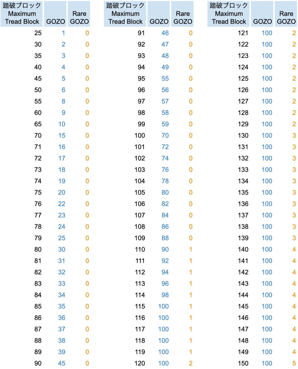- 活动结束后,根据玩家的通关区块获得以下GOZO宝箱。