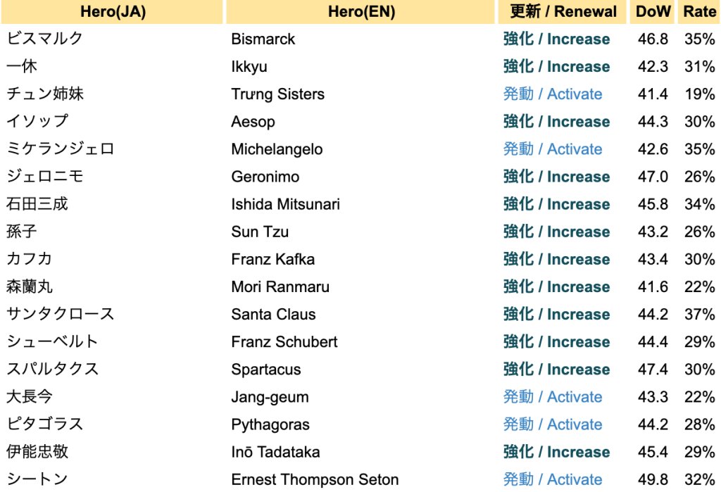 通过将上述值相乘,我们根据除Novice之外的所有英雄的使用率x获胜率更新了以下3个级别。