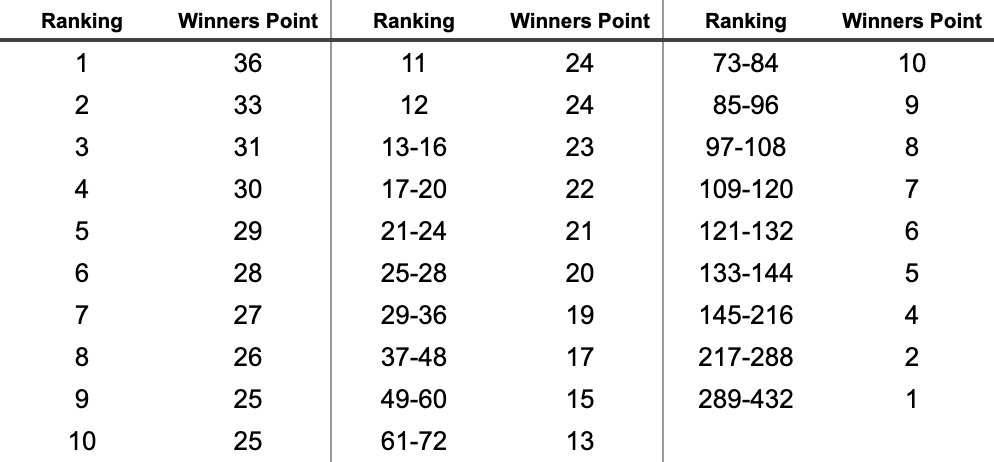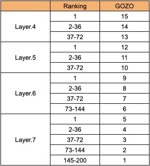 每次主战Term结束后,Layer和排名越高的玩家获得的点数越多。