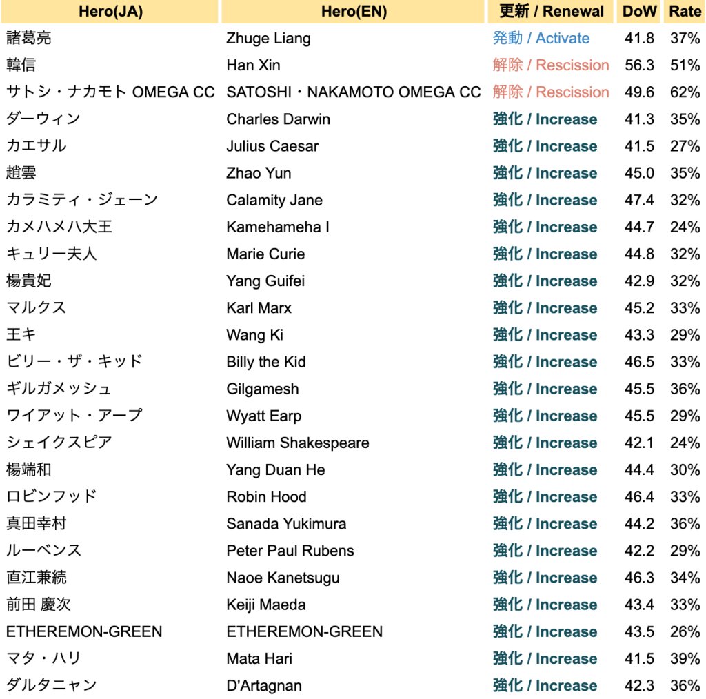 随着战斗实验室的上线,根据角斗场中的使用率和胜率每位英雄会获得不同的buff或debuff。