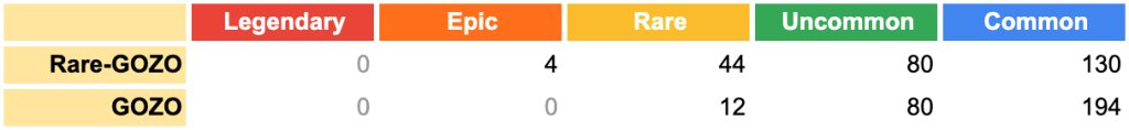 排名靠前的玩家可以获得Rare-GOZO。比普通GOZO有更高几率入手稀有初始Extension。除了会获得以下初始Extension外还会获得TOKU点数,不存在无奖励宝箱。Rare-GOZO也更容易获得更多的TOKU点数。