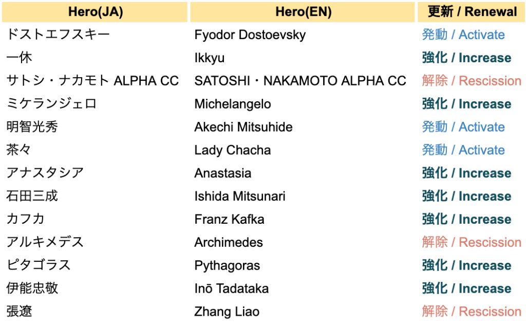 以及,将来会增加类似英雄贩售一样的变动机制。根据全体用户的消费所需CE会增加,随着时间推移会逐渐降低。(每个Layer的基础值都是独立存在和变动。)