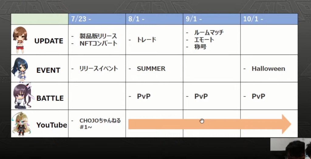 测试版刚结束不久的美少女格斗家RPG区块链游戏《CHOJO》在直播中发表了游戏第一季度的路线图,其中披露了许多游戏时间安排,更有3种联动活动随公测同步开展!