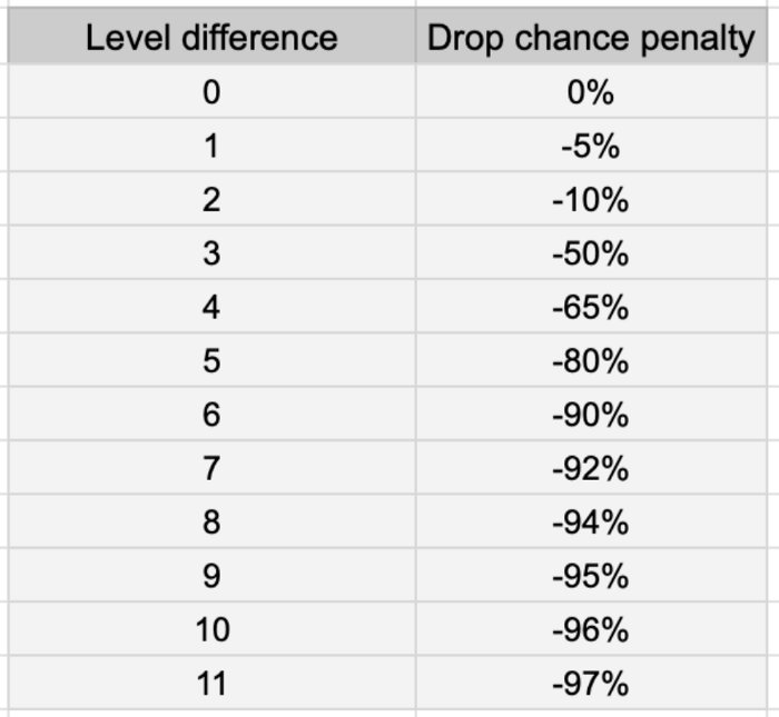 官方重做了掉落系统。现在等级超出地图等级越多,掉落几率就会越低。