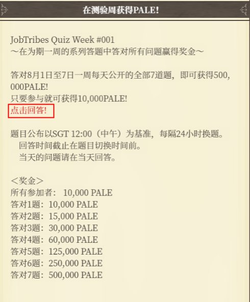 只要参加答题就可以获得10,000PALE,7个问题全部答对就能获得500,000PALE!