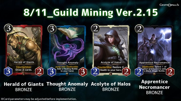 TCG区块链游戏《CryptoSpells》2020年8月活动表出炉,新功能【挑战】8月7日上线。