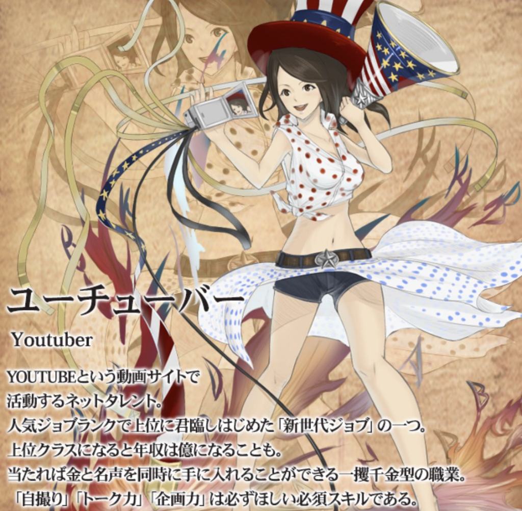这款游戏由日本Digital Entertainment Asset推出的首款卡牌战斗游戏。游戏的设计来源于日本《日本薪水&职业图鉴》这本RPG画风的书。游戏里有5大类800多个职业。而玩家的身份则是【无职业】(职を持たない)的特别存在,玩家需要做的就是在这个职业争霸的幻想世界中与不同的职业相遇,一起战斗并且成长。