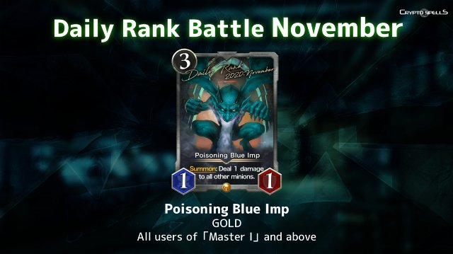 TCG区块链游戏《CryptoSpells》11月季每日排位战即将开始!新的一月也来卡牌决斗吧!