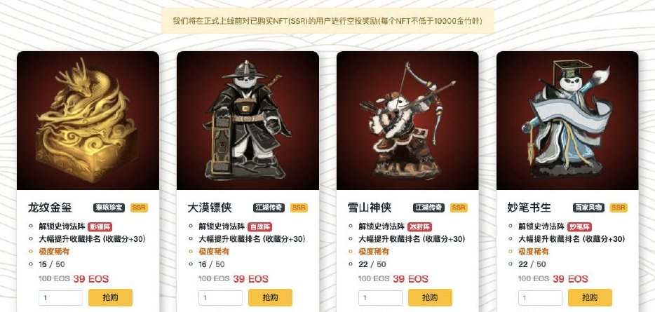 本次NFT预售限量200件,抢购成功的玩家将能够直接解锁高级法阵、并在游戏正式上线前得到每个NFT不低于1万金竹叶的空投奖励!