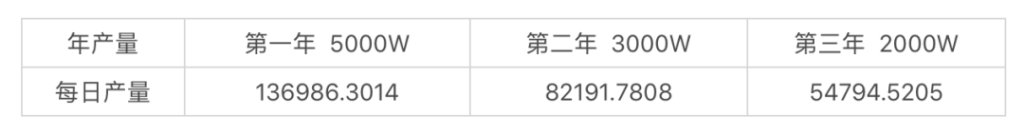 树苗 SAPL是加密绿洲生态的权益通证,可在未来参与加密绿洲的重大决策表决、收益分红、NFT 空投等福利。树苗的矿产总量为 1 亿(占总量的 5%),产量规则如下: