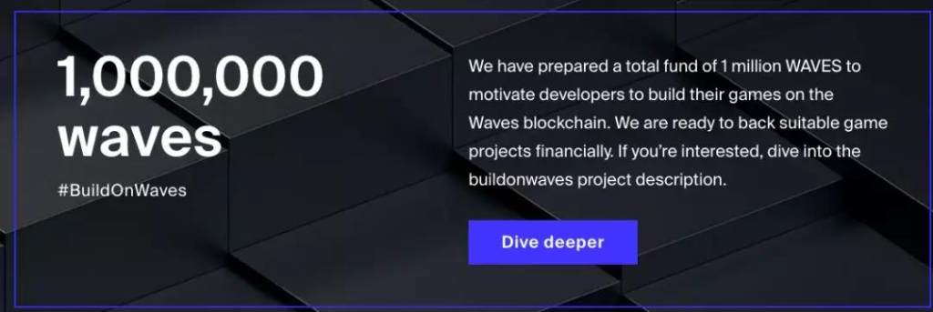 最近,Waves的团队推出了游戏扶持计划,包括向Waves平台上开始构建与游戏相关的dApp的开发人员共计授予100万WAVES(约280万美元=约2000万元人民币)。