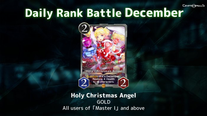 TCG区块链游戏《CryptoSpells》12月每日排位战即将开启!参与活动赢取黄金神圣圣诞天使卡牌!